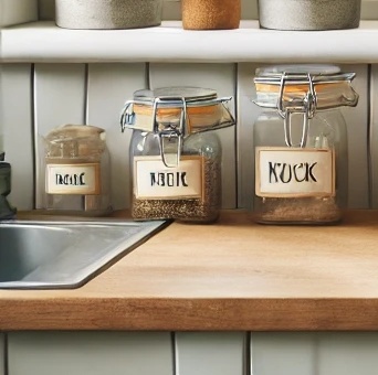 - 카테고리별로 투명 수납용기를 사용해 정리하면 필요한 재료를 쉽게 찾을 수 있어요.
